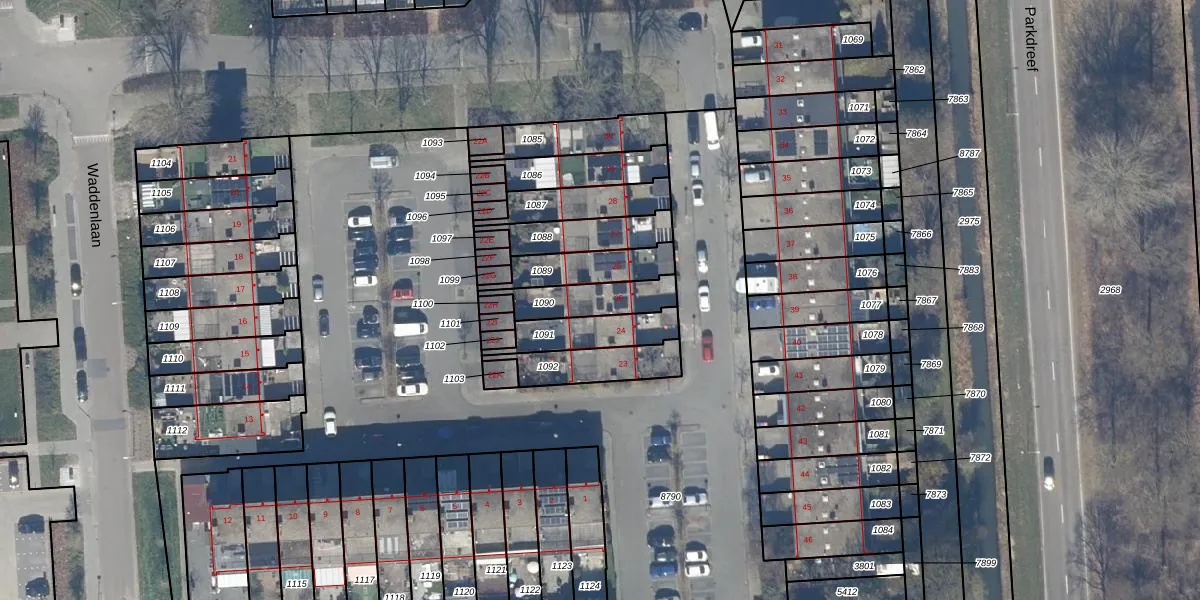Het adres is gelegen op perceel 1090 in de sectie K en de kadastrale gemeente Lelystad. De kadastrale aanduiding is aldus LLS00-K-1090. Het perceel is kleiner dan gemiddeld in Lelystad. Het perceel is 153 m² groot, terwijl het gemiddelde ligt op 2,1 ha. De grootste perceeloppervlakte in de kadastrale gemeente is 78,50 km². De kleinste oppervlakte bedraagt 0 m². Dit is het enige adres dat aanwezig is op het perceel. De huidige grenzen van het perceel zijn digitaal in de Basisregistratie Kadaster (BRK) geregistreerd op 02-01-2007.