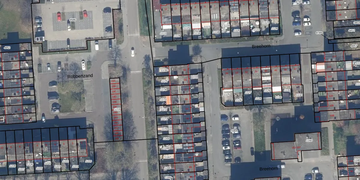 Gebruik de zoekbalk of klik op een perceel voor informatie over de adressen binnen dit perceel.