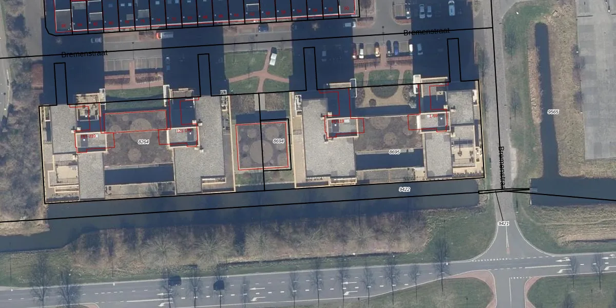 Het perceel waarop Bremenstraat 111 staat heeft een oppervlakte van 2210 m². Dit is een zeer groot perceel. De perceeloppervlakte wordt geregistreerd door het Kadaster. Gedetailleerde informatie over de maten van dit perceel kunt u vinden in het rapport Kadastrale kaart met maatvoering van Bremenstraat 111.