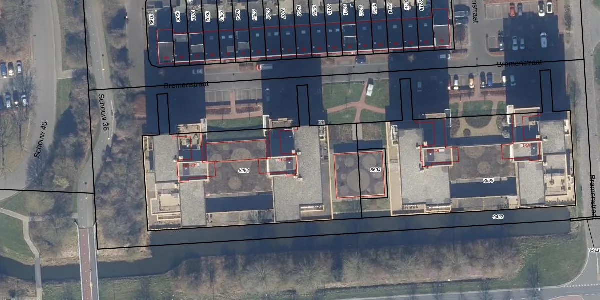 Het perceel waarop Bremenstraat 147 staat heeft een oppervlakte van 2360 m². Dit is een zeer groot perceel. De perceeloppervlakte wordt geregistreerd door het Kadaster. Gedetailleerde informatie over de maten van dit perceel kunt u vinden in het rapport Kadastrale kaart met maatvoering van Bremenstraat 147.