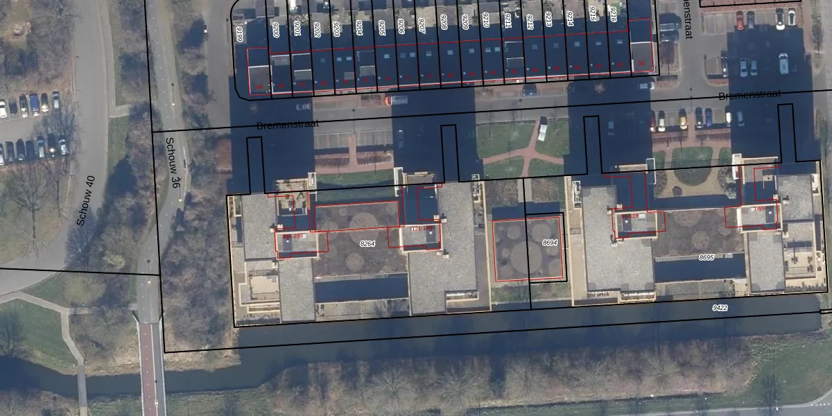 Het perceel waarop Bremenstraat 161 staat heeft een oppervlakte van 2360 m². Dit is een zeer groot perceel. De perceeloppervlakte wordt geregistreerd door het Kadaster. Gedetailleerde informatie over de maten van dit perceel kunt u vinden in het rapport Kadastrale kaart met maatvoering van Bremenstraat 161.