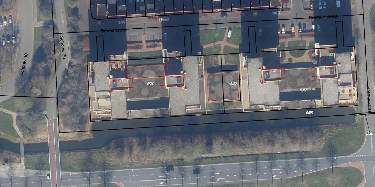 Het perceel waarop Bremenstraat 177 staat heeft een oppervlakte van 2360 m². Dit is een zeer groot perceel. De perceeloppervlakte wordt geregistreerd door het Kadaster. Gedetailleerde informatie over de maten van dit perceel kunt u vinden in het rapport Kadastrale kaart met maatvoering van Bremenstraat 177.