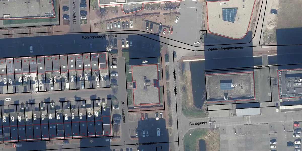 Het perceel waarop Bremenstraat 2 staat heeft een oppervlakte van 845 m². Dit is een groot perceel. De perceeloppervlakte wordt geregistreerd door het Kadaster. Gedetailleerde informatie over de maten van dit perceel kunt u vinden in het rapport Kadastrale kaart met maatvoering van Bremenstraat 2.