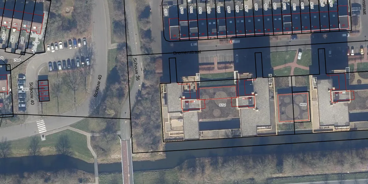 Het perceel waarop Bremenstraat 205 staat heeft een oppervlakte van 2360 m². Dit is een zeer groot perceel. De perceeloppervlakte wordt geregistreerd door het Kadaster. Gedetailleerde informatie over de maten van dit perceel kunt u vinden in het rapport Kadastrale kaart met maatvoering van Bremenstraat 205.