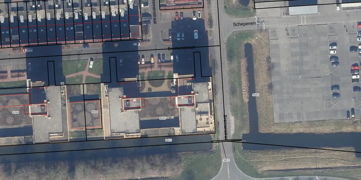 Het perceel waarop Bremenstraat 49 staat heeft een oppervlakte van 2210 m². Dit is een zeer groot perceel. De perceeloppervlakte wordt geregistreerd door het Kadaster. Gedetailleerde informatie over de maten van dit perceel kunt u vinden in het rapport Kadastrale kaart met maatvoering van Bremenstraat 49.