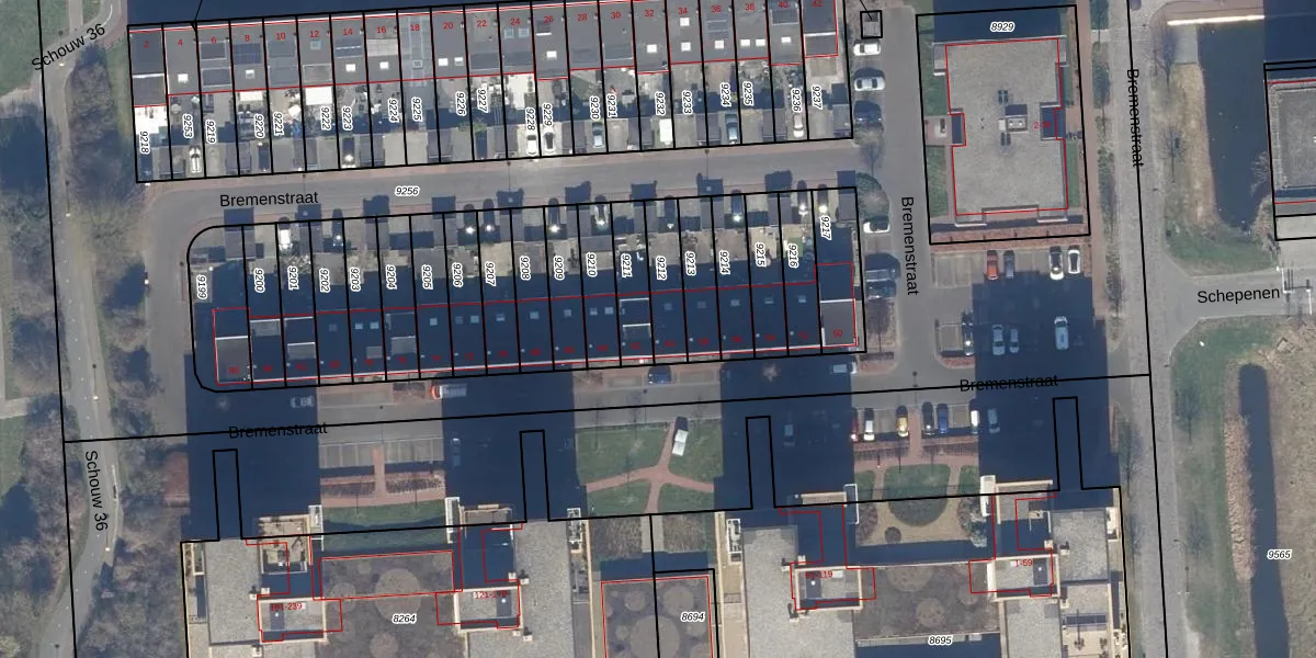 Gebruik de zoekbalk of klik op een perceel voor informatie over de adressen binnen dit perceel.