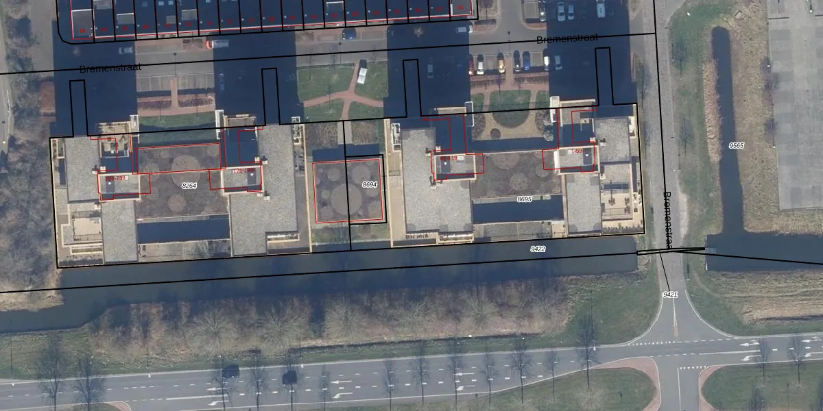 Het perceel waarop Bremenstraat 65 staat heeft een oppervlakte van 2210 m². Dit is een zeer groot perceel. De perceeloppervlakte wordt geregistreerd door het Kadaster. Gedetailleerde informatie over de maten van dit perceel kunt u vinden in het rapport Kadastrale kaart met maatvoering van Bremenstraat 65.