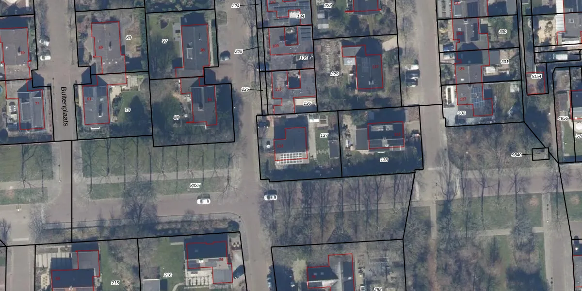 Het perceel waarop Buitenplaats 113 staat heeft een oppervlakte van 639 m². Dit is een groot perceel. De perceeloppervlakte wordt geregistreerd door het Kadaster. Gedetailleerde informatie over de maten van dit perceel kunt u vinden in het rapport Kadastrale kaart met maatvoering van Buitenplaats 113.