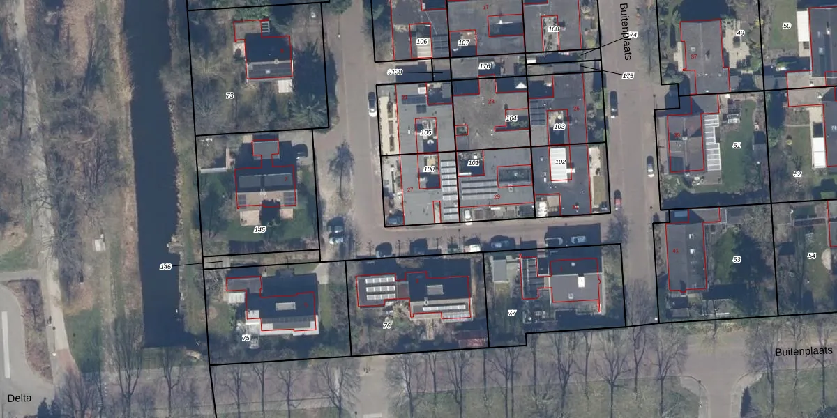 Gebruik de zoekbalk of klik op een perceel voor informatie over de adressen binnen dit perceel.
