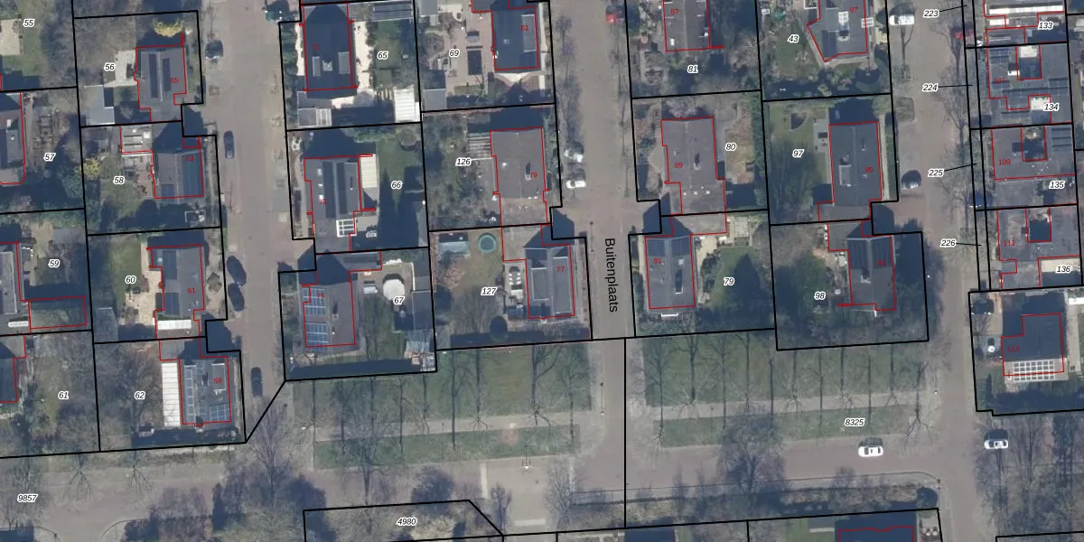 Gebruik de zoekbalk of klik op een perceel voor informatie over de adressen binnen dit perceel.