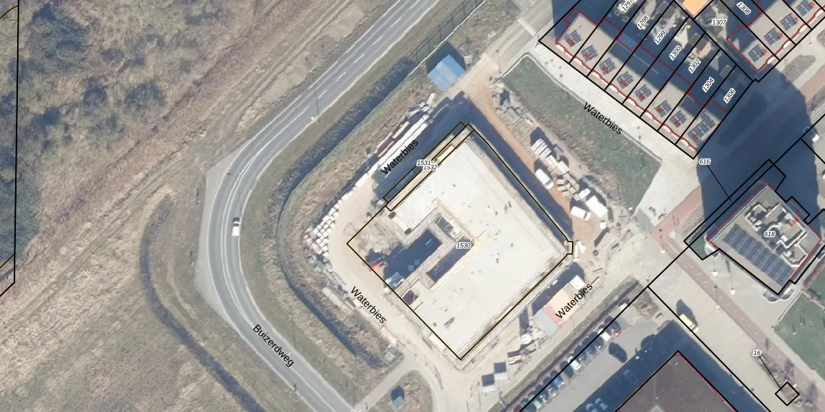 Het perceel waarop Buizerdlaan 103 staat heeft een oppervlakte van 1536 m². Dit is een zeer groot perceel. De perceeloppervlakte wordt geregistreerd door het Kadaster. Gedetailleerde informatie over de maten van dit perceel kunt u vinden in het rapport Kadastrale kaart met maatvoering van Buizerdlaan 103.