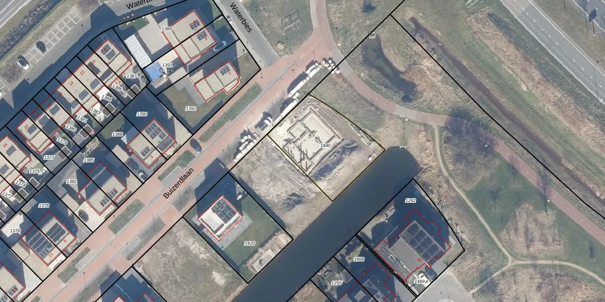 Gebruik de zoekbalk of klik op een perceel voor informatie over de adressen binnen dit perceel.