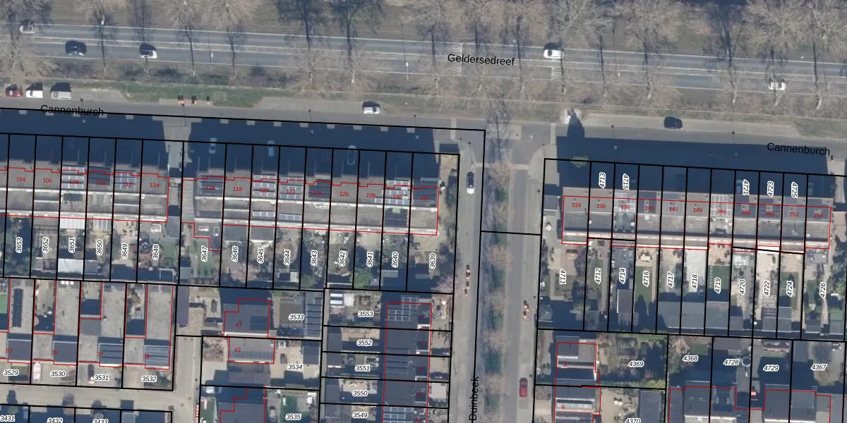Gebruik de zoekbalk of klik op een perceel voor informatie over de adressen binnen dit perceel.