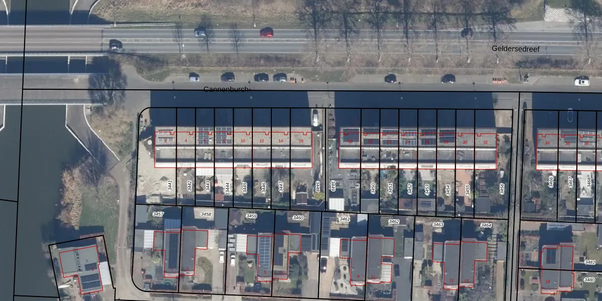Gebruik de zoekbalk of klik op een perceel voor informatie over de adressen binnen dit perceel.