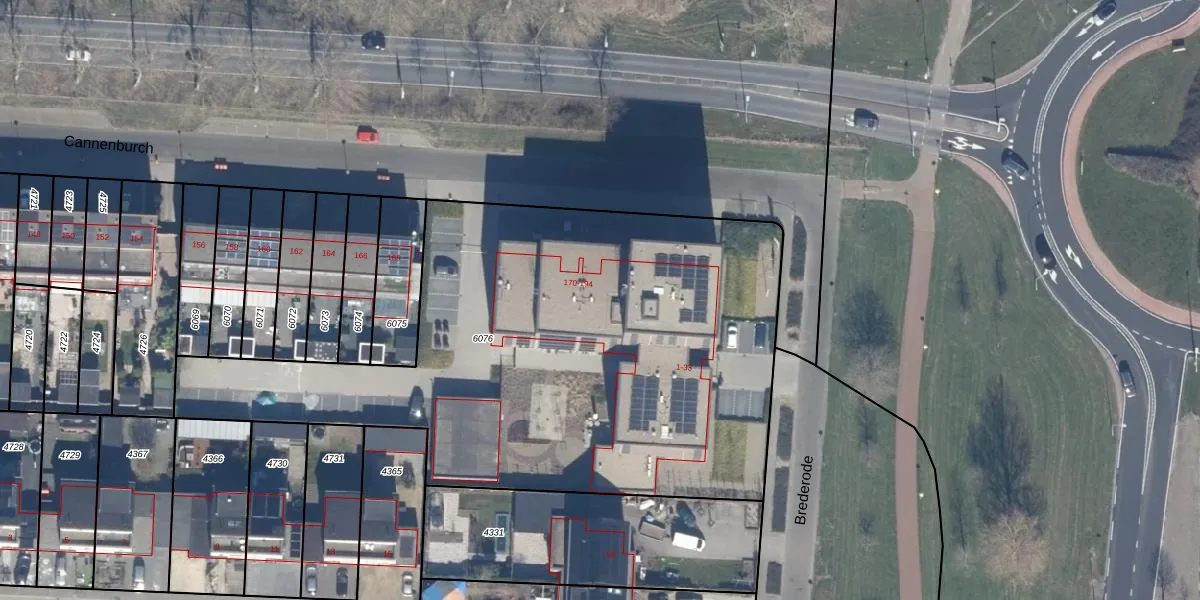 Het perceel waarop Cannenburch 172 staat heeft een oppervlakte van 3175 m². Dit is een zeer groot perceel. De perceeloppervlakte wordt geregistreerd door het Kadaster. Gedetailleerde informatie over de maten van dit perceel kunt u vinden in het rapport Kadastrale kaart met maatvoering van Cannenburch 172.