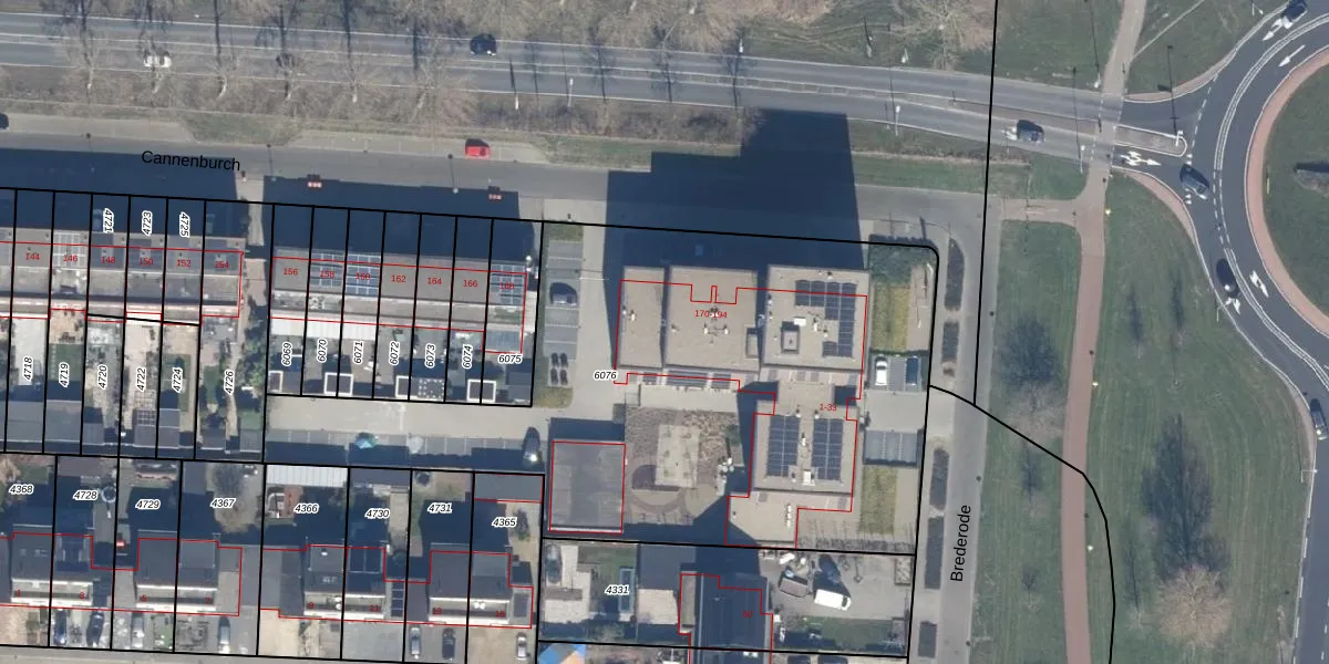 Het perceel waarop Cannenburch 180 staat heeft een oppervlakte van 3175 m². Dit is een zeer groot perceel. De perceeloppervlakte wordt geregistreerd door het Kadaster. Gedetailleerde informatie over de maten van dit perceel kunt u vinden in het rapport Kadastrale kaart met maatvoering van Cannenburch 180.