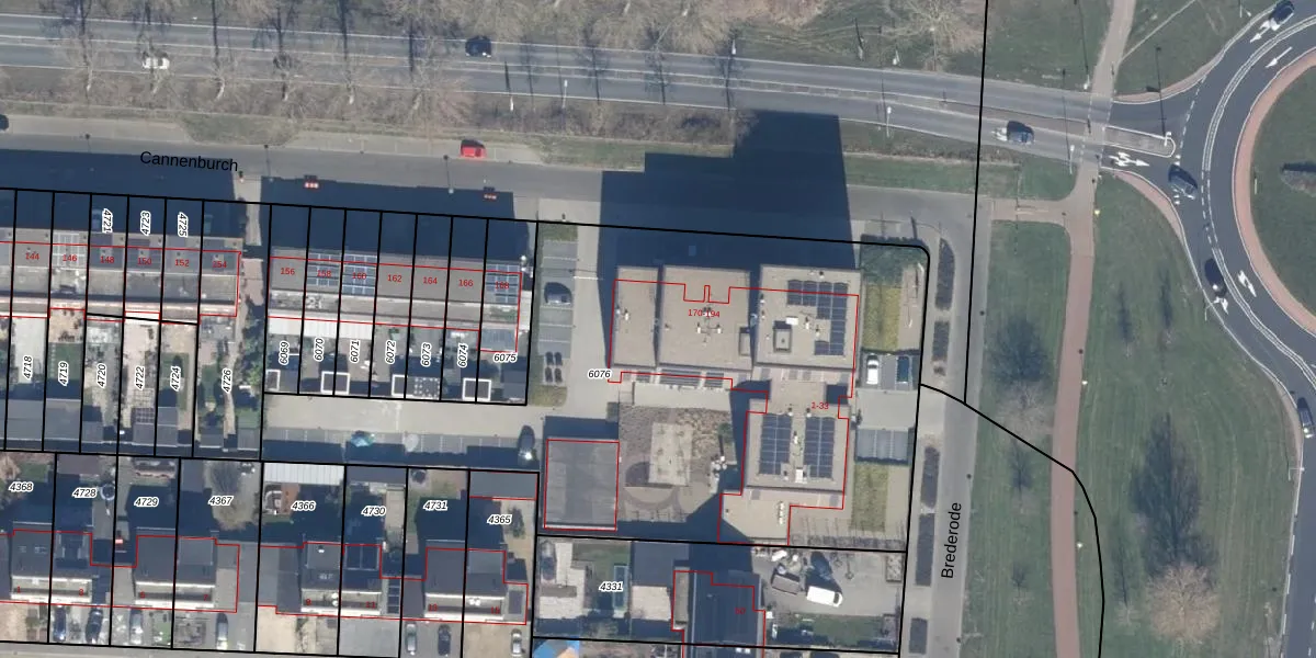 Het perceel waarop Cannenburch 186 staat heeft een oppervlakte van 3175 m². Dit is een zeer groot perceel. De perceeloppervlakte wordt geregistreerd door het Kadaster. Gedetailleerde informatie over de maten van dit perceel kunt u vinden in het rapport Kadastrale kaart met maatvoering van Cannenburch 186.