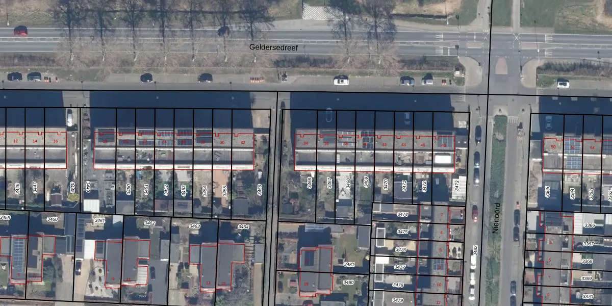 Gebruik de zoekbalk of klik op een perceel voor informatie over de adressen binnen dit perceel.