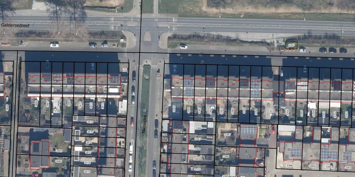 Gebruik de zoekbalk of klik op een perceel voor informatie over de adressen binnen dit perceel.