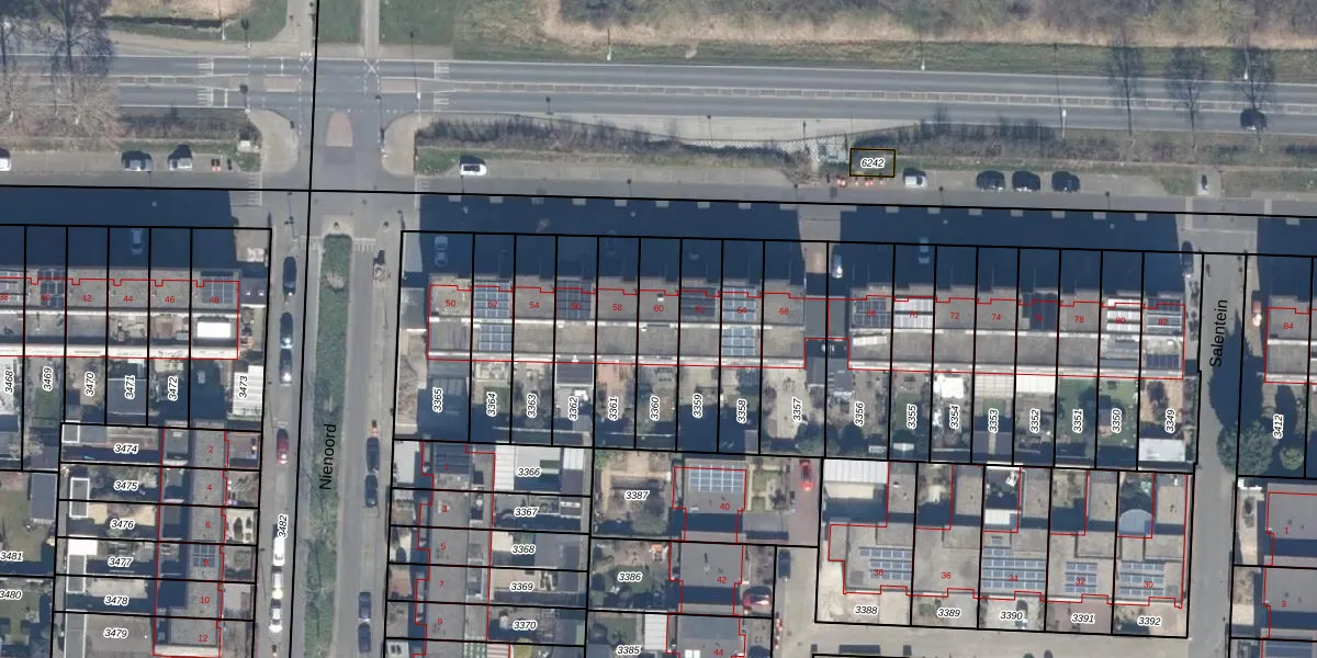 Gebruik de zoekbalk of klik op een perceel voor informatie over de adressen binnen dit perceel.