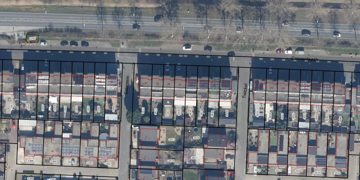 Gebruik de zoekbalk of klik op een perceel voor informatie over de adressen binnen dit perceel.