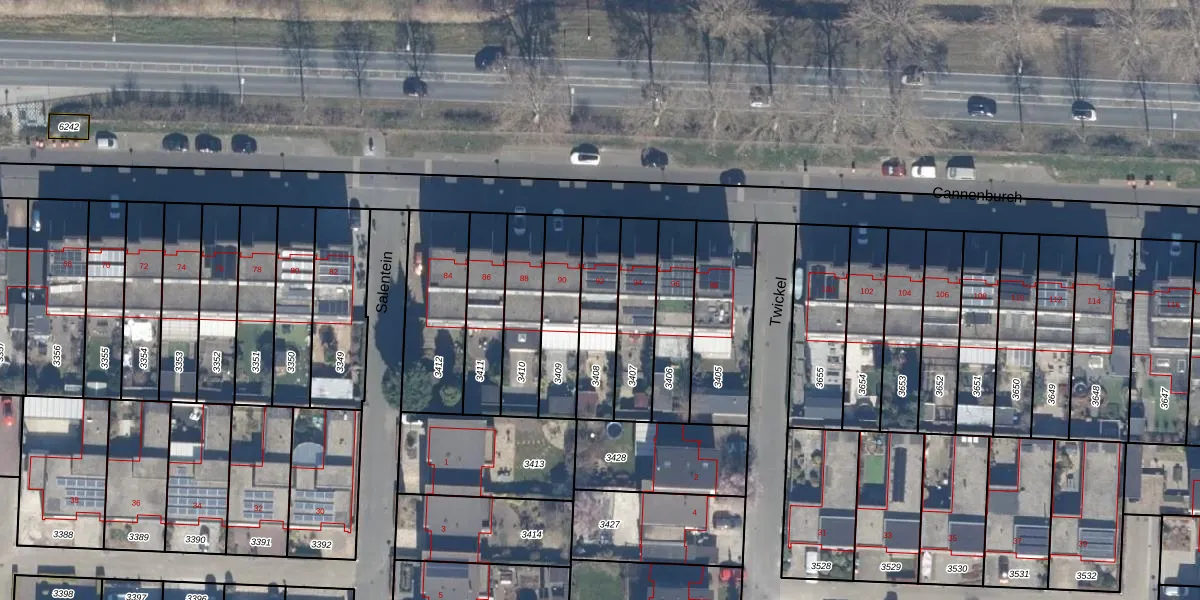 Het perceel waarop Cannenburch 92 staat heeft een oppervlakte van 213 m². Dit is een middelgroot perceel. De perceeloppervlakte wordt geregistreerd door het Kadaster. Gedetailleerde informatie over de maten van dit perceel kunt u vinden in het rapport Kadastrale kaart met maatvoering van Cannenburch 92.