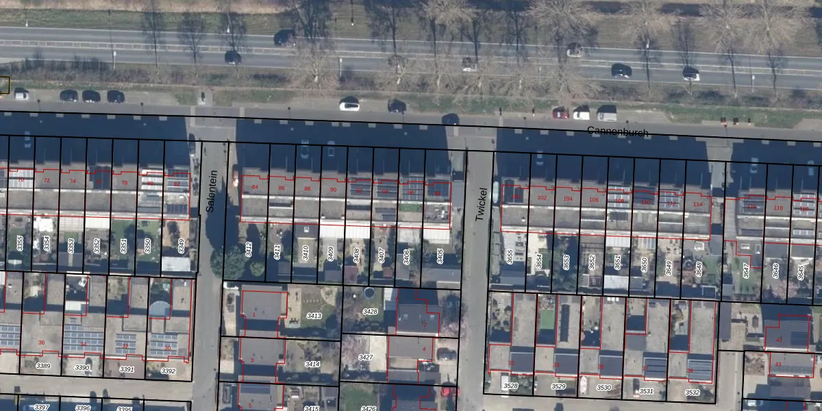 Gebruik de zoekbalk of klik op een perceel voor informatie over de adressen binnen dit perceel.