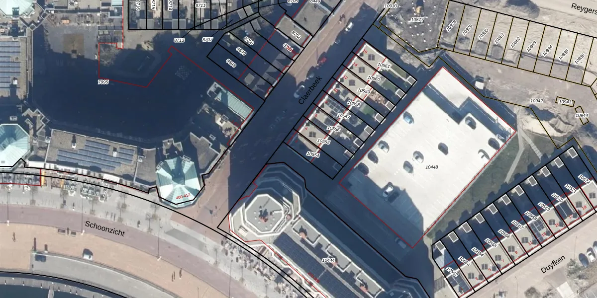 Gebruik de zoekbalk of klik op een perceel voor informatie over de adressen binnen dit perceel.
