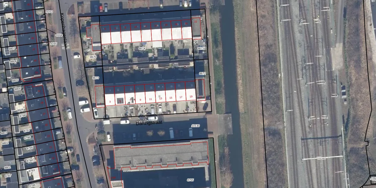 Het perceel waarop Danzigstraat 19 staat heeft een oppervlakte van 2663 m². Dit is een zeer groot perceel. De perceeloppervlakte wordt geregistreerd door het Kadaster. Gedetailleerde informatie over de maten van dit perceel kunt u vinden in het rapport Kadastrale kaart met maatvoering van Danzigstraat 19.