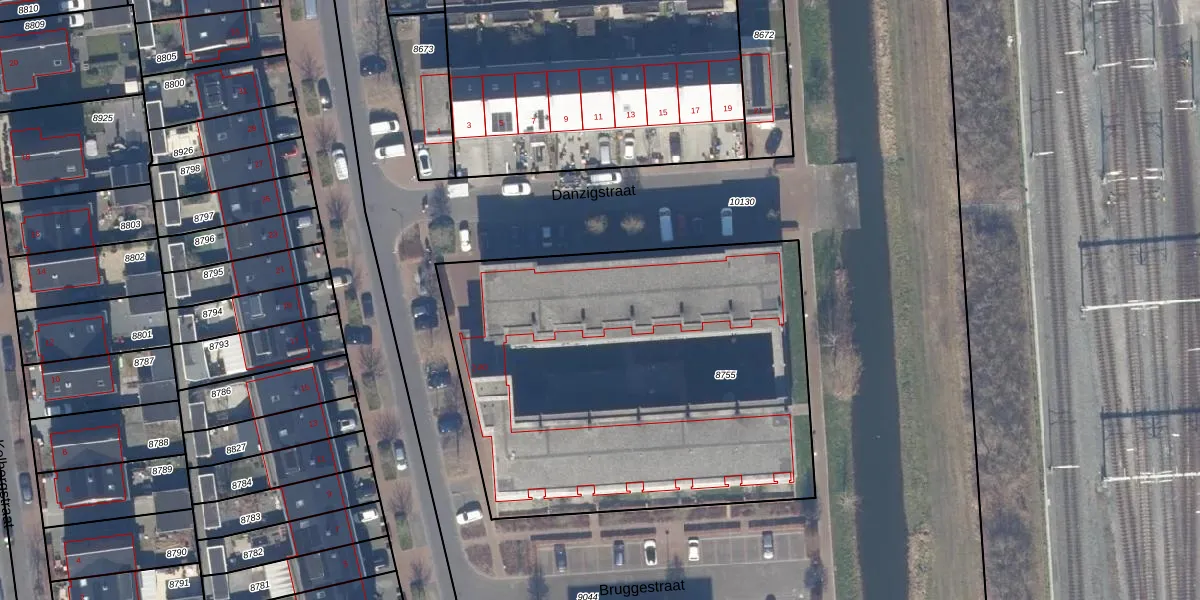 Het perceel waarop Danzigstraat 26 staat heeft een oppervlakte van 2470 m². Dit is een zeer groot perceel. De perceeloppervlakte wordt geregistreerd door het Kadaster. Gedetailleerde informatie over de maten van dit perceel kunt u vinden in het rapport Kadastrale kaart met maatvoering van Danzigstraat 26.