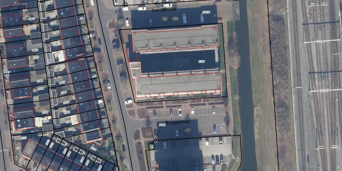 Het perceel waarop Danzigstraat 38 staat heeft een oppervlakte van 2470 m². Dit is een zeer groot perceel. De perceeloppervlakte wordt geregistreerd door het Kadaster. Gedetailleerde informatie over de maten van dit perceel kunt u vinden in het rapport Kadastrale kaart met maatvoering van Danzigstraat 38.