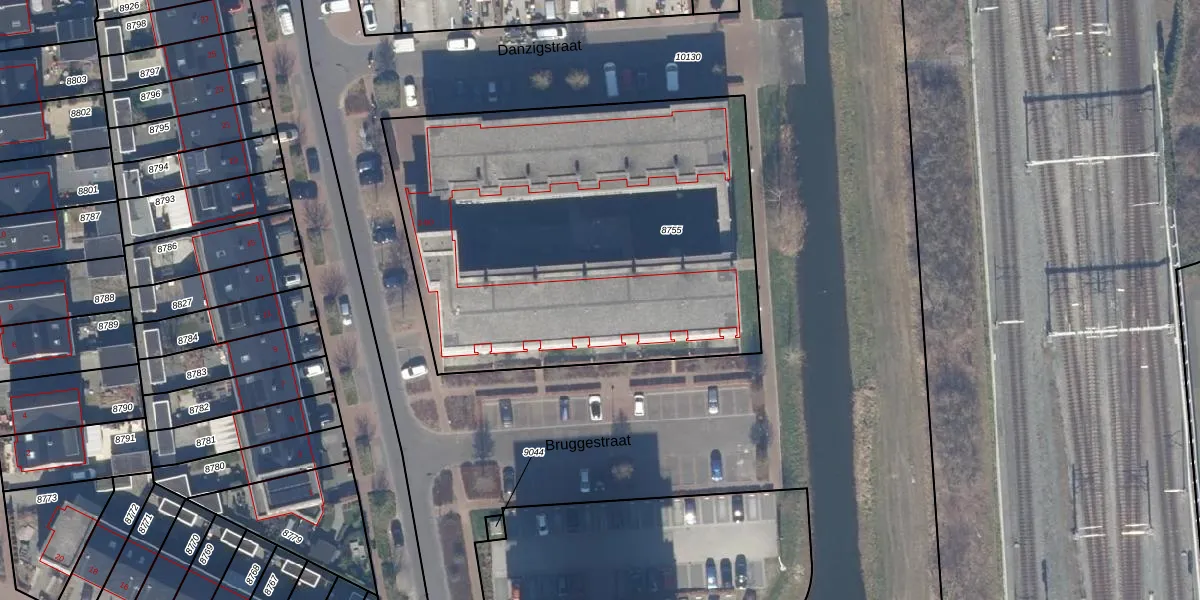Het perceel waarop Danzigstraat 64 staat heeft een oppervlakte van 2470 m². Dit is een zeer groot perceel. De perceeloppervlakte wordt geregistreerd door het Kadaster. Gedetailleerde informatie over de maten van dit perceel kunt u vinden in het rapport Kadastrale kaart met maatvoering van Danzigstraat 64.