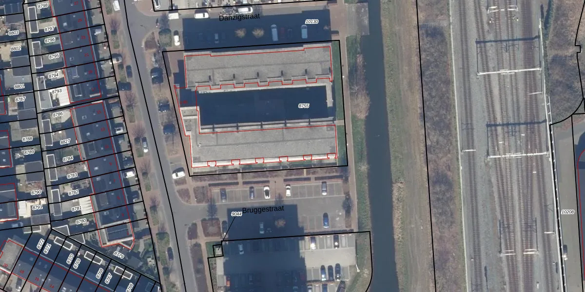Het perceel waarop Danzigstraat 78 staat heeft een oppervlakte van 2470 m². Dit is een zeer groot perceel. De perceeloppervlakte wordt geregistreerd door het Kadaster. Gedetailleerde informatie over de maten van dit perceel kunt u vinden in het rapport Kadastrale kaart met maatvoering van Danzigstraat 78.