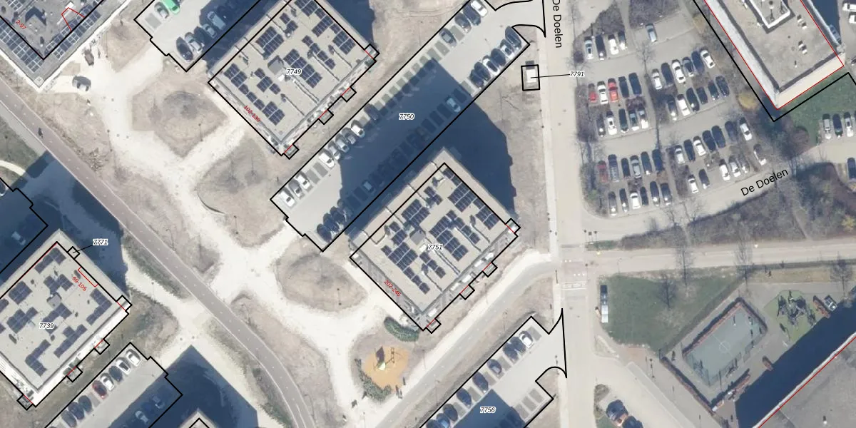 Het perceel waarop De Doelen 216 staat heeft een oppervlakte van 776 m². Dit is een groot perceel. De perceeloppervlakte wordt geregistreerd door het Kadaster. Gedetailleerde informatie over de maten van dit perceel kunt u vinden in het rapport Kadastrale kaart met maatvoering van De Doelen 216.