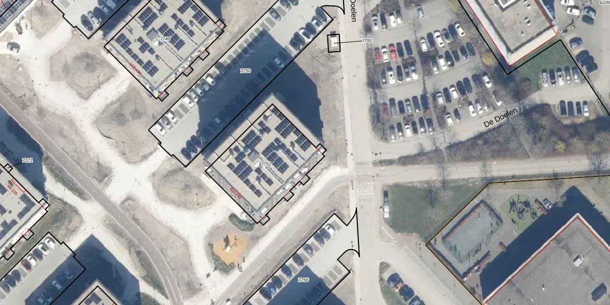 Het perceel waarop De Doelen 226 staat heeft een oppervlakte van 776 m². Dit is een groot perceel. De perceeloppervlakte wordt geregistreerd door het Kadaster. Gedetailleerde informatie over de maten van dit perceel kunt u vinden in het rapport Kadastrale kaart met maatvoering van De Doelen 226.