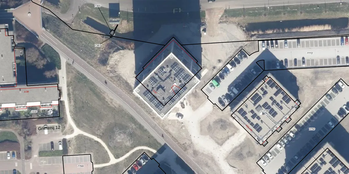 Het perceel waarop De Doelen 25 staat heeft een oppervlakte van 756 m². Dit is een groot perceel. De perceeloppervlakte wordt geregistreerd door het Kadaster. Gedetailleerde informatie over de maten van dit perceel kunt u vinden in het rapport Kadastrale kaart met maatvoering van De Doelen 25.