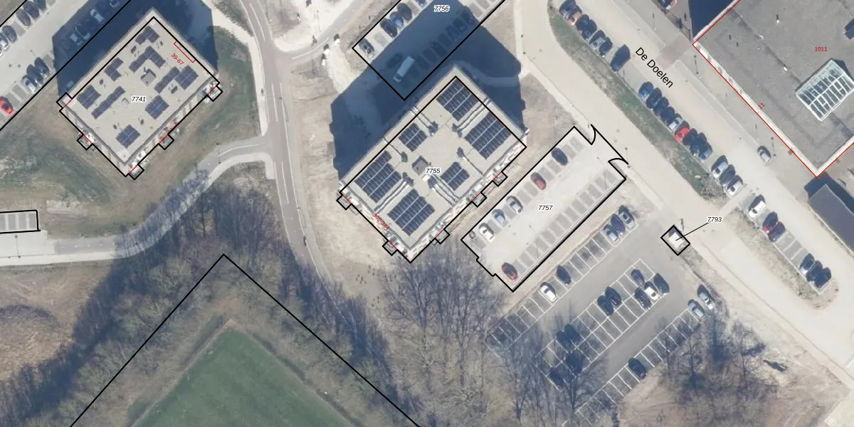 Het perceel waarop De Doelen 315 staat heeft een oppervlakte van 923 m². Dit is een groot perceel. De perceeloppervlakte wordt geregistreerd door het Kadaster. Gedetailleerde informatie over de maten van dit perceel kunt u vinden in het rapport Kadastrale kaart met maatvoering van De Doelen 315.