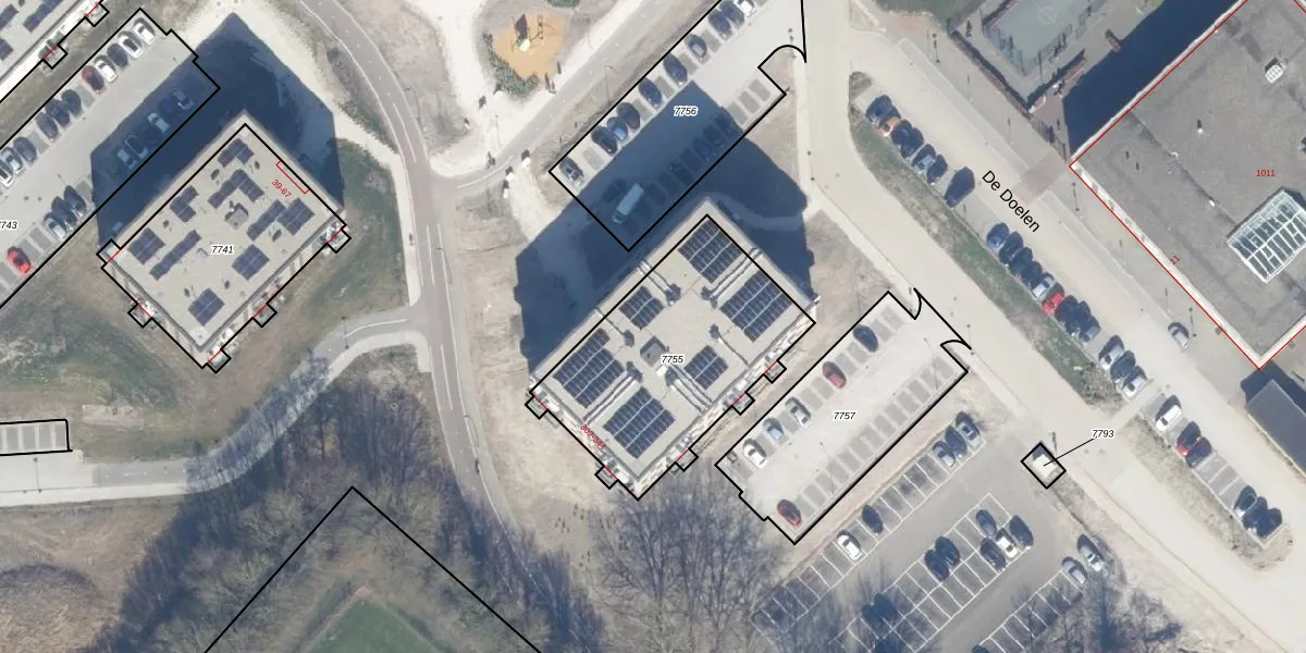 Het perceel waarop De Doelen 319 staat heeft een oppervlakte van 923 m². Dit is een groot perceel. De perceeloppervlakte wordt geregistreerd door het Kadaster. Gedetailleerde informatie over de maten van dit perceel kunt u vinden in het rapport Kadastrale kaart met maatvoering van De Doelen 319.