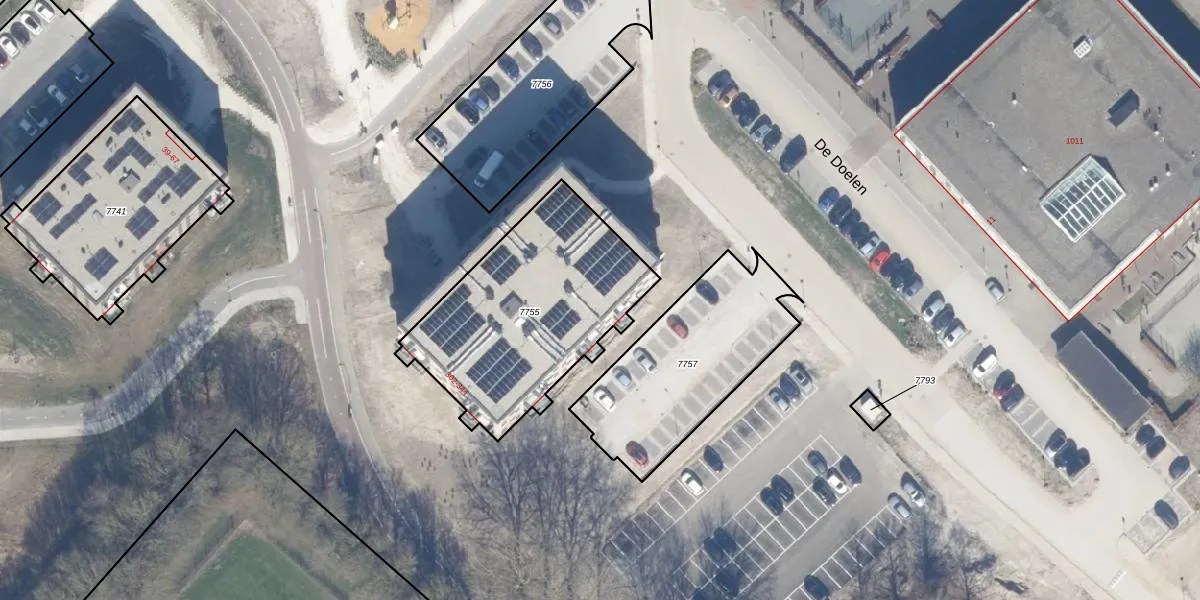 Het perceel waarop De Doelen 323 staat heeft een oppervlakte van 923 m². Dit is een groot perceel. De perceeloppervlakte wordt geregistreerd door het Kadaster. Gedetailleerde informatie over de maten van dit perceel kunt u vinden in het rapport Kadastrale kaart met maatvoering van De Doelen 323.