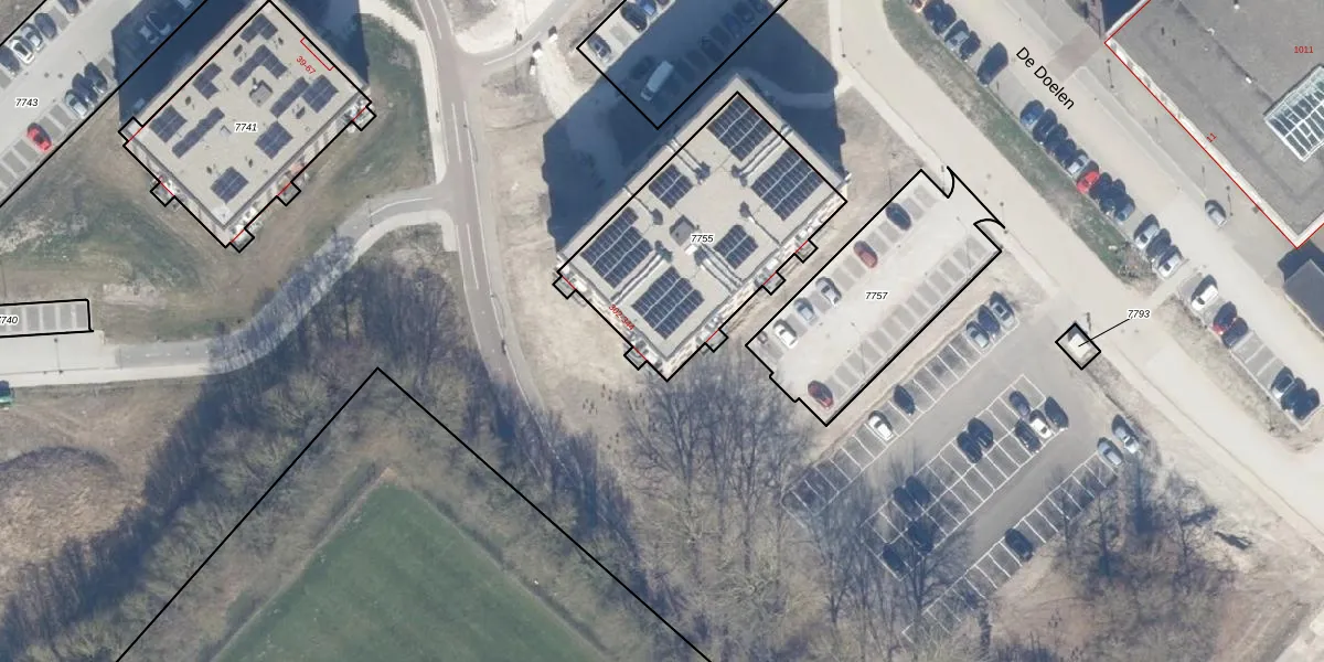 Het perceel waarop De Doelen 326 staat heeft een oppervlakte van 923 m². Dit is een groot perceel. De perceeloppervlakte wordt geregistreerd door het Kadaster. Gedetailleerde informatie over de maten van dit perceel kunt u vinden in het rapport Kadastrale kaart met maatvoering van De Doelen 326.