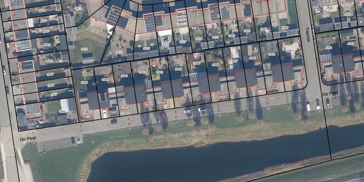 Gebruik de zoekbalk of klik op een perceel voor informatie over de adressen binnen dit perceel.