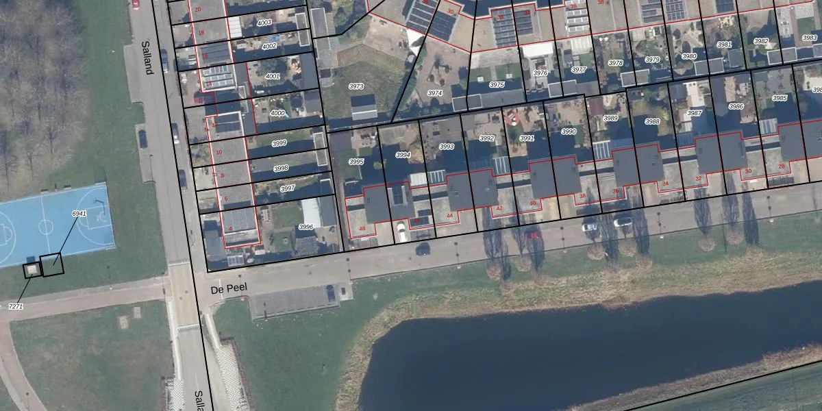 Gebruik de zoekbalk of klik op een perceel voor informatie over de adressen binnen dit perceel.