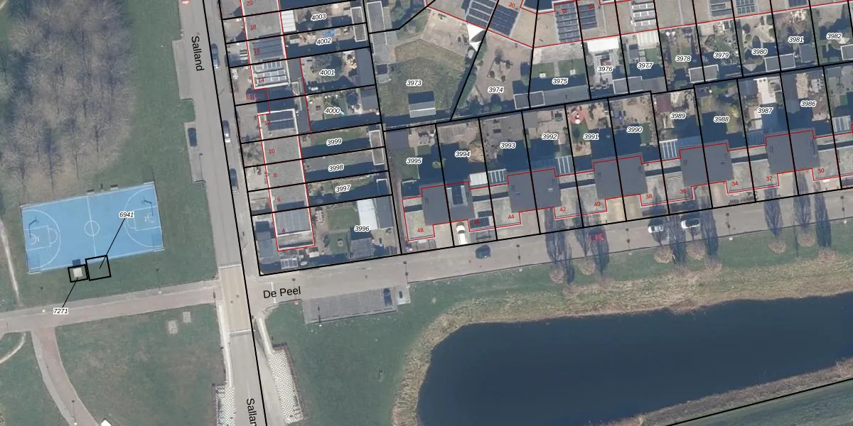 Het perceel waarop De Peel 48 staat heeft een oppervlakte van 364 m². Dit is een groot perceel. De perceeloppervlakte wordt geregistreerd door het Kadaster. Gedetailleerde informatie over de maten van dit perceel kunt u vinden in het rapport Kadastrale kaart met maatvoering van De Peel 48.