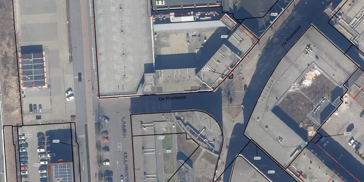 Het perceel waarop De Promesse 115 staat heeft een oppervlakte van 7621 m². Dit is een zeer groot perceel. De perceeloppervlakte wordt geregistreerd door het Kadaster. Gedetailleerde informatie over de maten van dit perceel kunt u vinden in het rapport Kadastrale kaart met maatvoering van De Promesse 115.