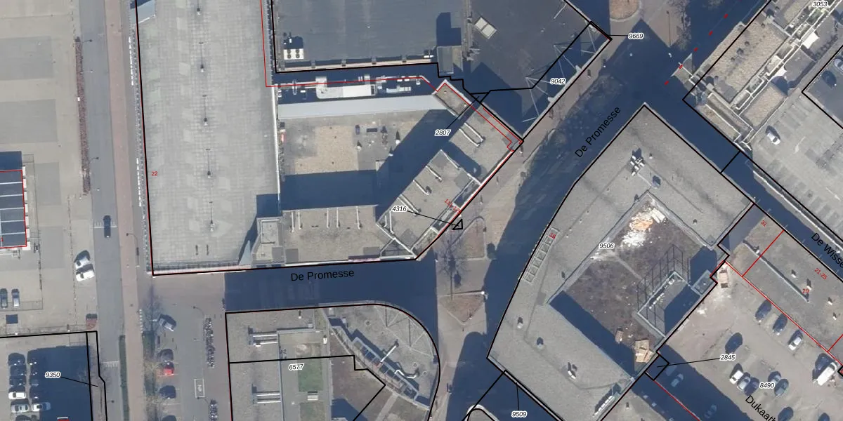 Het perceel waarop De Promesse 153 staat heeft een oppervlakte van 7621 m². Dit is een zeer groot perceel. De perceeloppervlakte wordt geregistreerd door het Kadaster. Gedetailleerde informatie over de maten van dit perceel kunt u vinden in het rapport Kadastrale kaart met maatvoering van De Promesse 153.