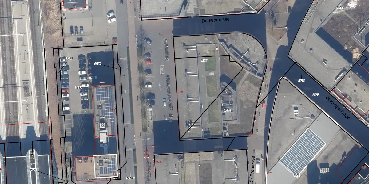 Het perceel waarop De Promesse 67 staat heeft een oppervlakte van 916 m². Dit is een groot perceel. De perceeloppervlakte wordt geregistreerd door het Kadaster. Gedetailleerde informatie over de maten van dit perceel kunt u vinden in het rapport Kadastrale kaart met maatvoering van De Promesse 67.