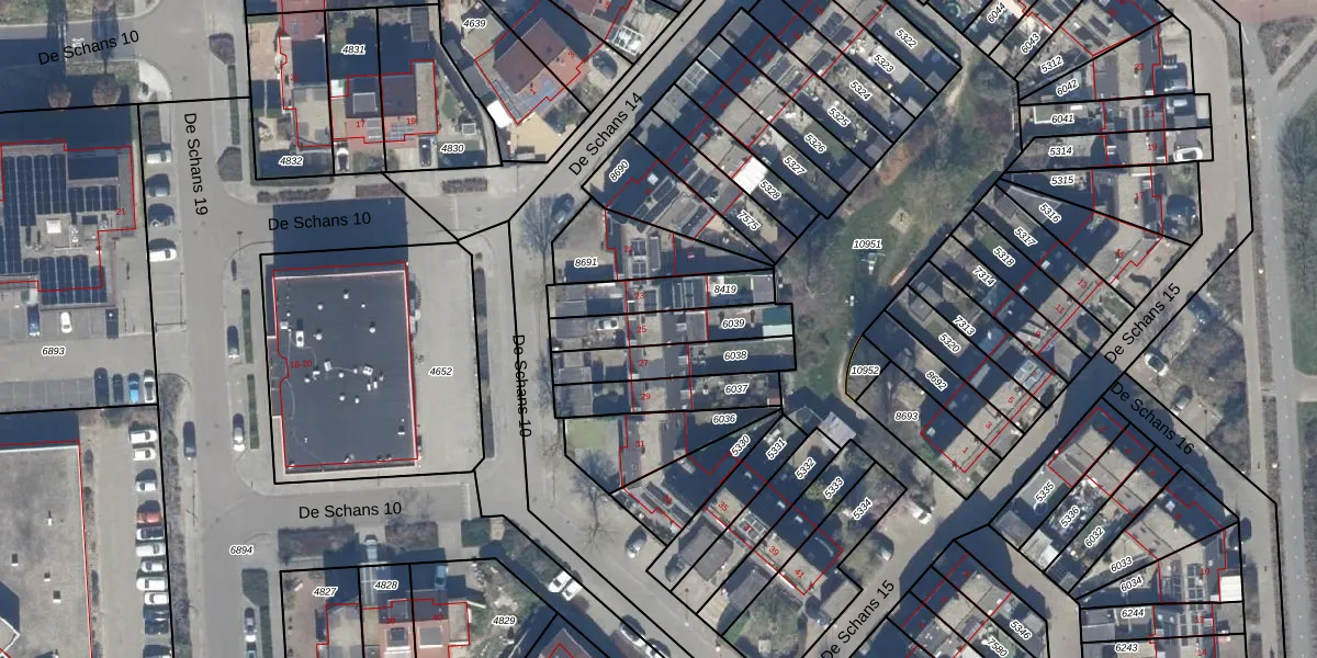 Het perceel waarop De Schans 10 25 staat heeft een oppervlakte van 188 m². Dit is een middelgroot perceel. De perceeloppervlakte wordt geregistreerd door het Kadaster. Gedetailleerde informatie over de maten van dit perceel kunt u vinden in het rapport Kadastrale kaart met maatvoering van De Schans 10 25.