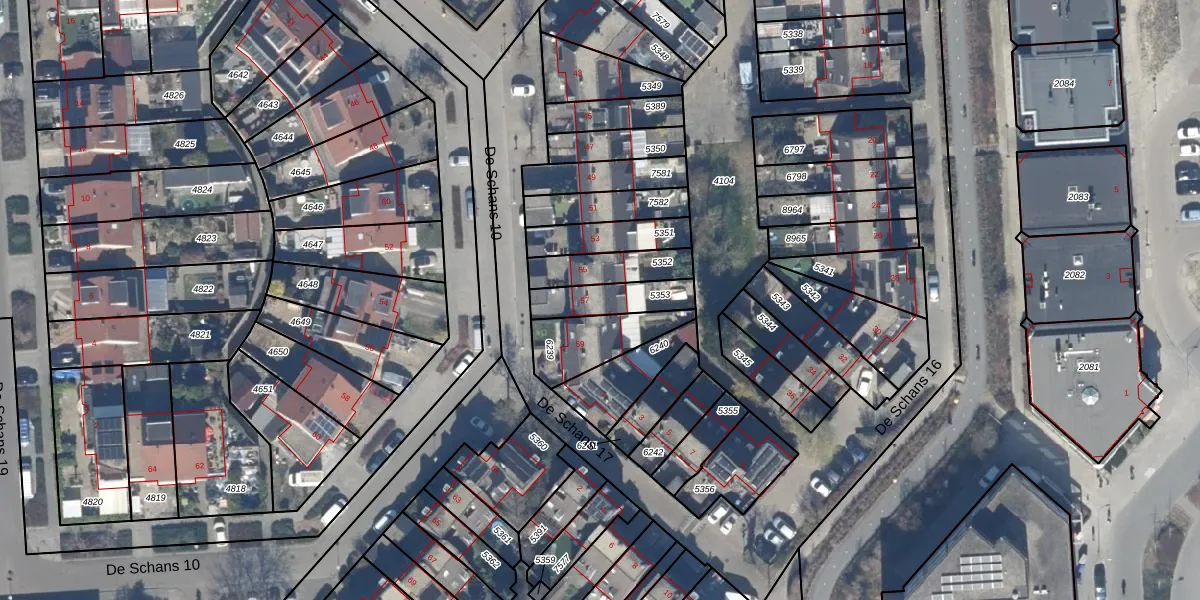 Het perceel waarop De Schans 10 57 staat heeft een oppervlakte van 141 m². Dit is een middelgroot perceel. De perceeloppervlakte wordt geregistreerd door het Kadaster. Gedetailleerde informatie over de maten van dit perceel kunt u vinden in het rapport Kadastrale kaart met maatvoering van De Schans 10 57.