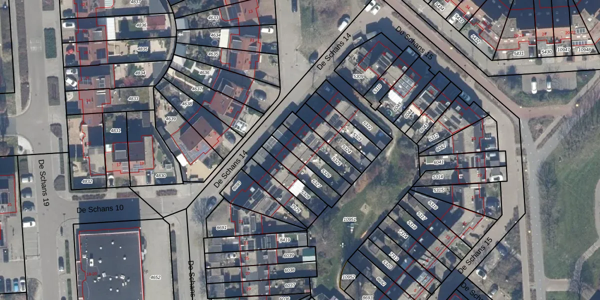 Het perceel waarop De Schans 14 10 staat heeft een oppervlakte van 158 m². Dit is een middelgroot perceel. De perceeloppervlakte wordt geregistreerd door het Kadaster. Gedetailleerde informatie over de maten van dit perceel kunt u vinden in het rapport Kadastrale kaart met maatvoering van De Schans 14 10.