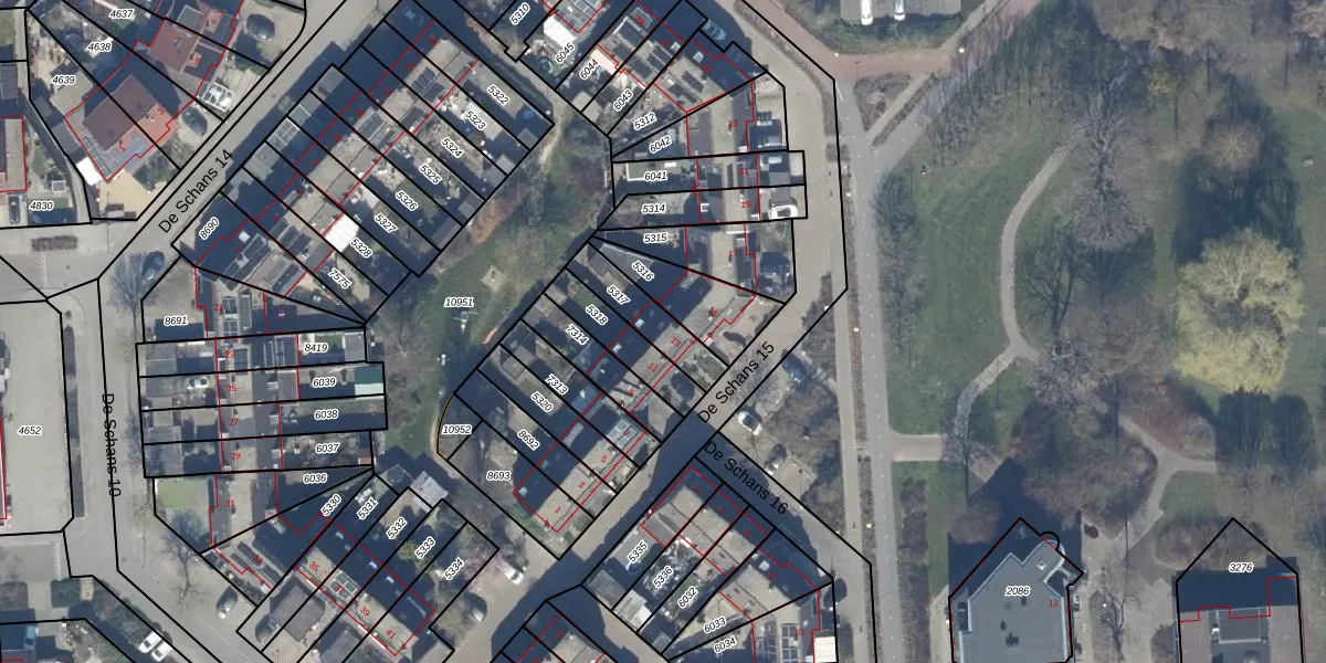 Gebruik de zoekbalk of klik op een perceel voor informatie over de adressen binnen dit perceel.